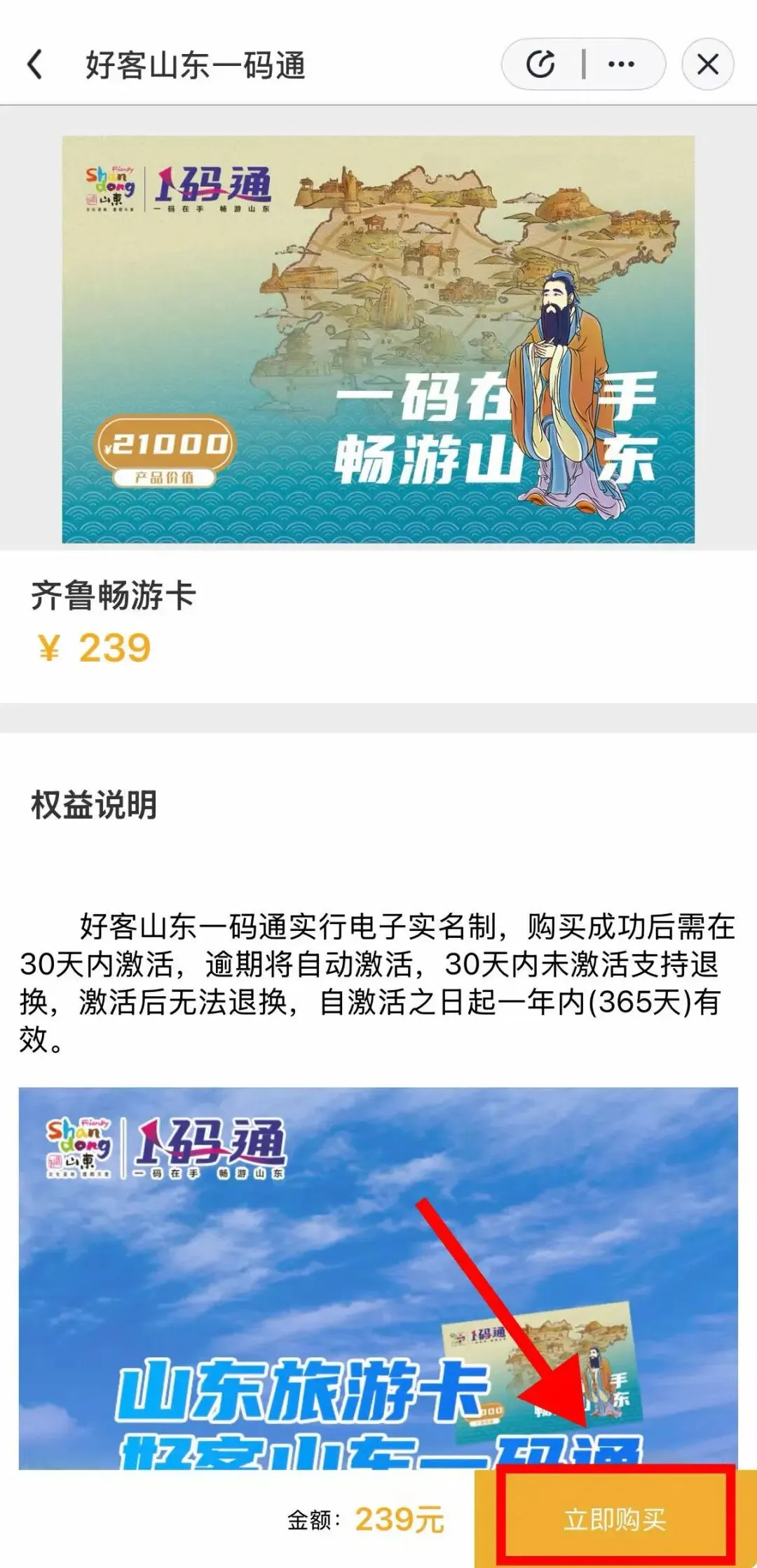 “好客山东一码通”是由山东省官方建设、运营和发行的山东省旅游年卡。该旅游年卡整合全省16市170余家优质文旅资源,其中涵盖5A景区9家、4A景区约50家,同时包含数十次温泉体验、3次免费观影权益,以及滑雪、高尔夫、摩天轮、海上游轮、儿童娱乐中心、亲子乐园等多元化本地生活类资源,综合权益价值21000元