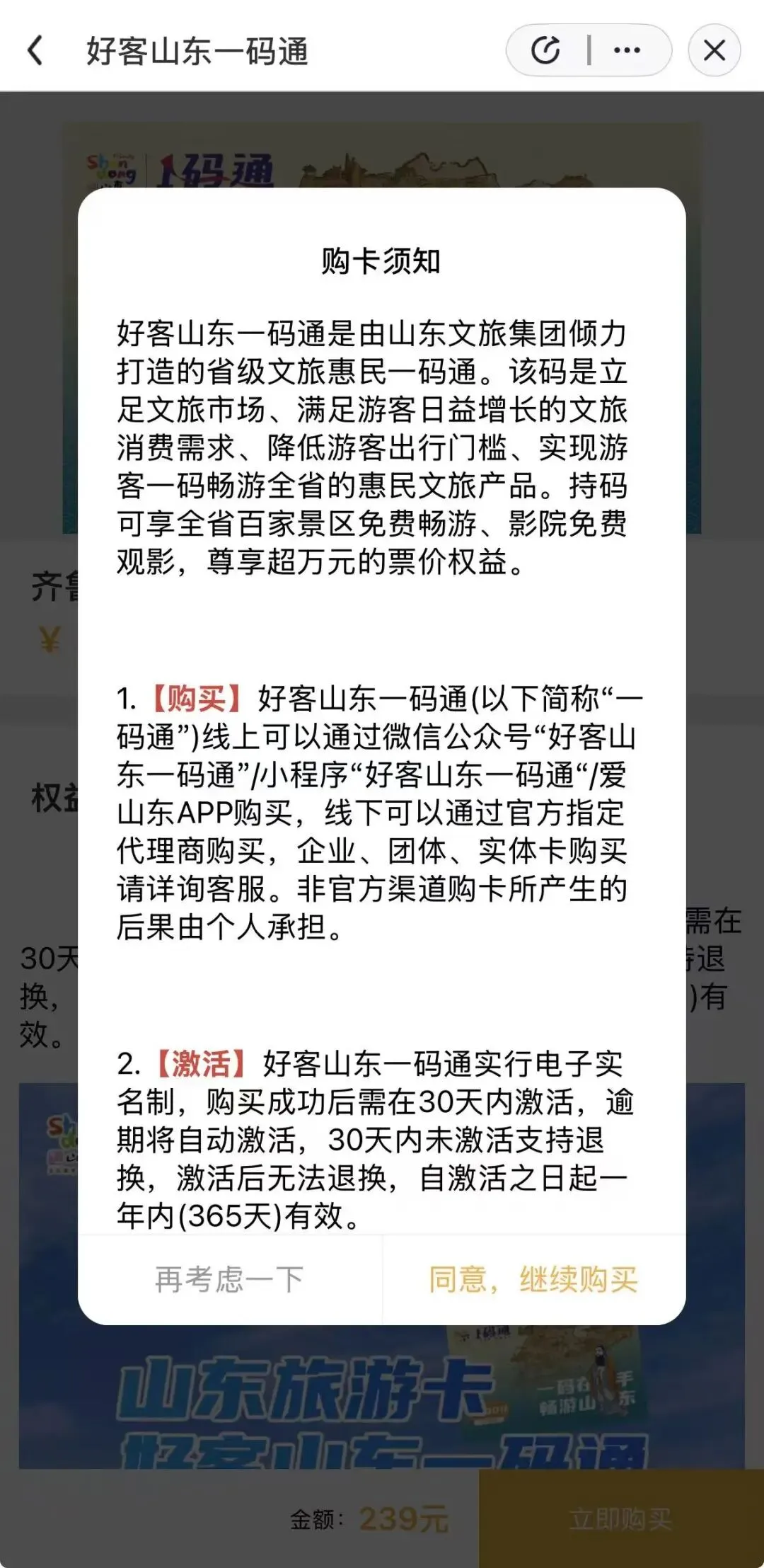 点击右下角“立即购买”,仔细阅读购卡须知并确认无误后,点击“同意,继续购买”,系统将自动跳转至支付页面,完成支付即视为购卡成功。