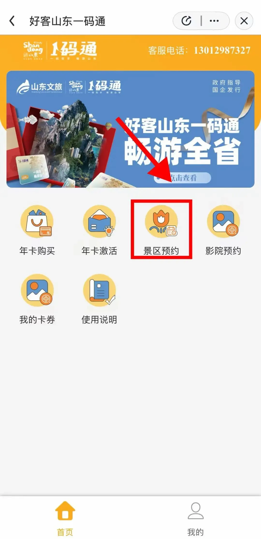 进入“好客山东一码通”首页,点击“景区预约”服务;