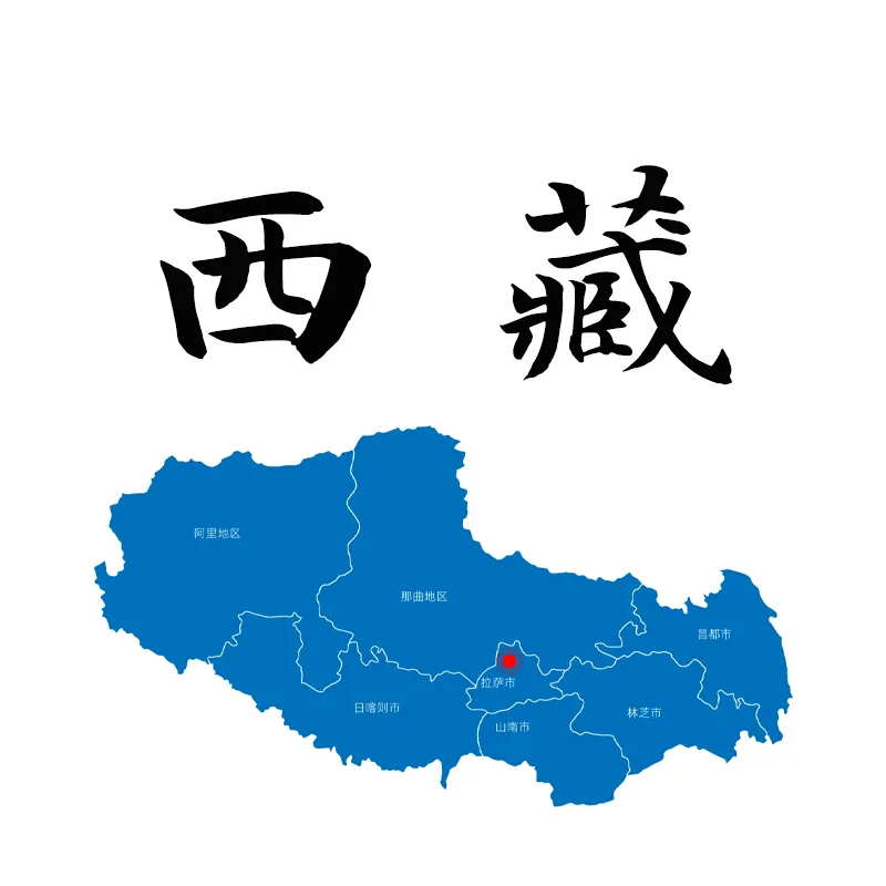 西藏自治区,简称藏,首府为拉萨市。西藏自治区北邻新疆维吾尔自治区,东连四川省,东北紧靠青海省,东南连接云南省,南与缅甸、印度、不丹、尼泊尔等国接壤,西与克什米尔地区毗邻。全境平均海拔在 4000 米以上,是世界上面积最大、海拔最高的高原区域。地形以高原、山地为主,山脉纵横交错,主要有喜马拉雅山脉、冈底斯山脉、念青唐古拉山脉、昆仑山脉等。世界最高峰珠穆朗玛峰(海拔 8848.86 米)位于中尼边境;境内湖泊众多,纳木错、羊卓雍错、玛旁雍错并称 “西藏三大圣湖”;雅鲁藏布大峡谷是世界上最深、最长的峡谷。属于独特的高原温带半干旱季风气候,兼具高原寒带、亚寒带、温带等多种气候类型。