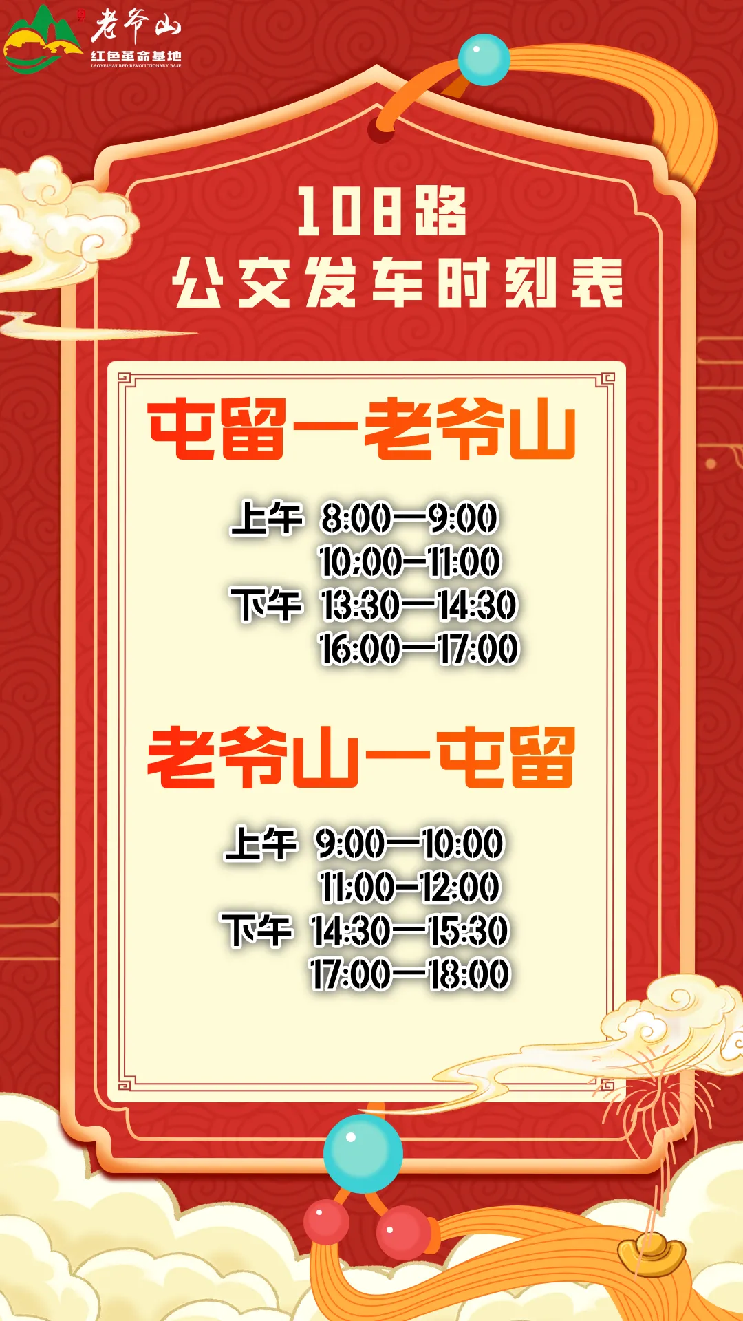 设有老爷山专线标识牌的108路公交,全程行驶约37公里,淡季每日上午、下午各发车两趟,旺季根据客流变化,动态调整增加旅游车辆频次。此专线运营时间经过优化,方便您根据个人行程安排出行,无论是清晨出发还是午后启程,都能轻松衔接。