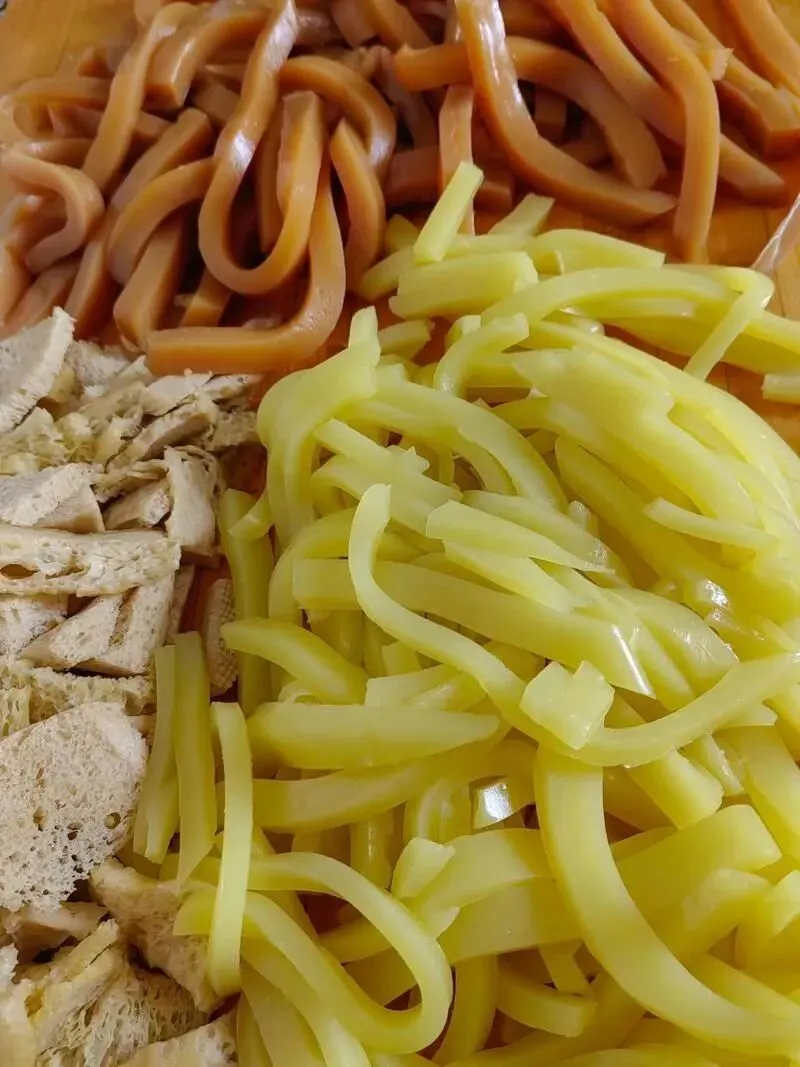酿皮子,夏天的救命粮。黄亮亮的面皮切成筷子宽的条,堆在碗里打着卷儿。浇上蒜水、油泼辣子、芥末汁,拿筷子搅和均匀。吸溜一口,凉丝丝的往嗓子眼儿里滑。