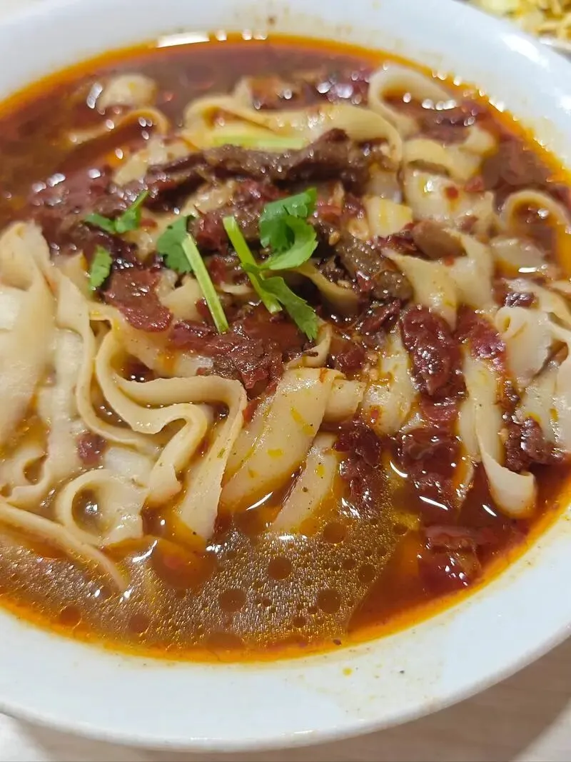 华阴烙面筋道,蘸汁一抹,咬着有劲。