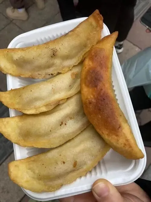 第2样,牛肉锅贴。南京人叫它”旱饺”。铁锅里一排排码好,底下煎得焦黄,咬开一个口,肉汁呲出来,嘴躲慢了烫舌头。牛肉馅调得咸香,混着一点点葱花的辛味儿。外壳又酥又脆,嚼起来咔嚓咔嚓的,能听见自己牙齿在干活。10个一份,8块钱,蘸点镇江香醋,酸味把油腻一刀切掉,清爽。老店早上排队能绑到门外,本地大爷端着报纸站着等,没人急。