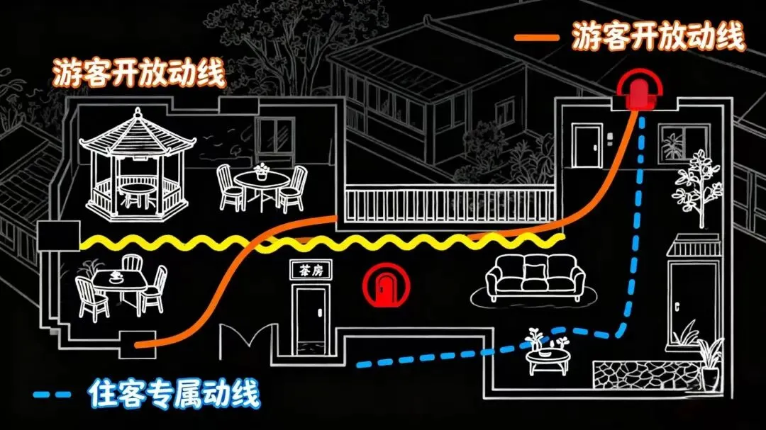 这是 “民宿景区化”最大的难点。如果处理不好,住客会投诉“太吵”、“隐私被侵犯”,导致口碑崩盘。