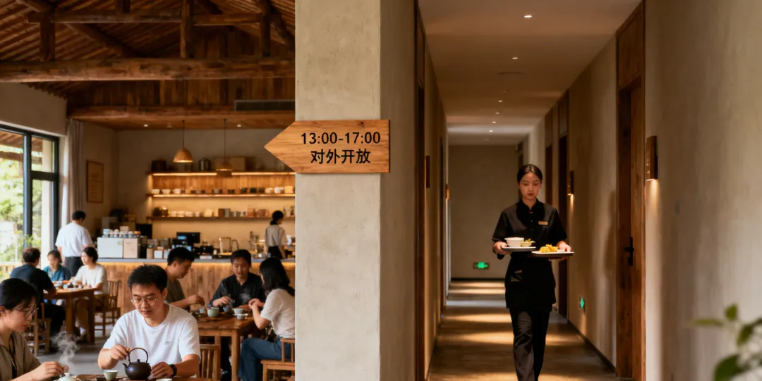 2. 时间分流,错峰经营设定严格的对外开放时间。例如:下午茶仅限13:00-17:00开放。早晨和晚上,必须还给住客一份绝对的宁静。 管家需要像景区的“调度员”一样,温柔而坚定地执行时间规则。