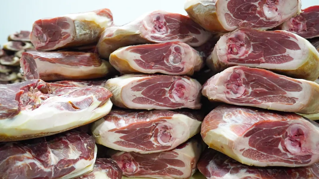 从最初的“毛腿”验收到初步修整、二次精修,再根据客户需求,将完整的火腿精准分割成不同规格的小块,随后进行包装,最后经过严格的重量与质量复检方能出库,每一道工序都体现着对品质的执着追求。规模化并未以牺牲传统风味为代价,而是始终保持着传统的腌制方式,确保了独特的风味。