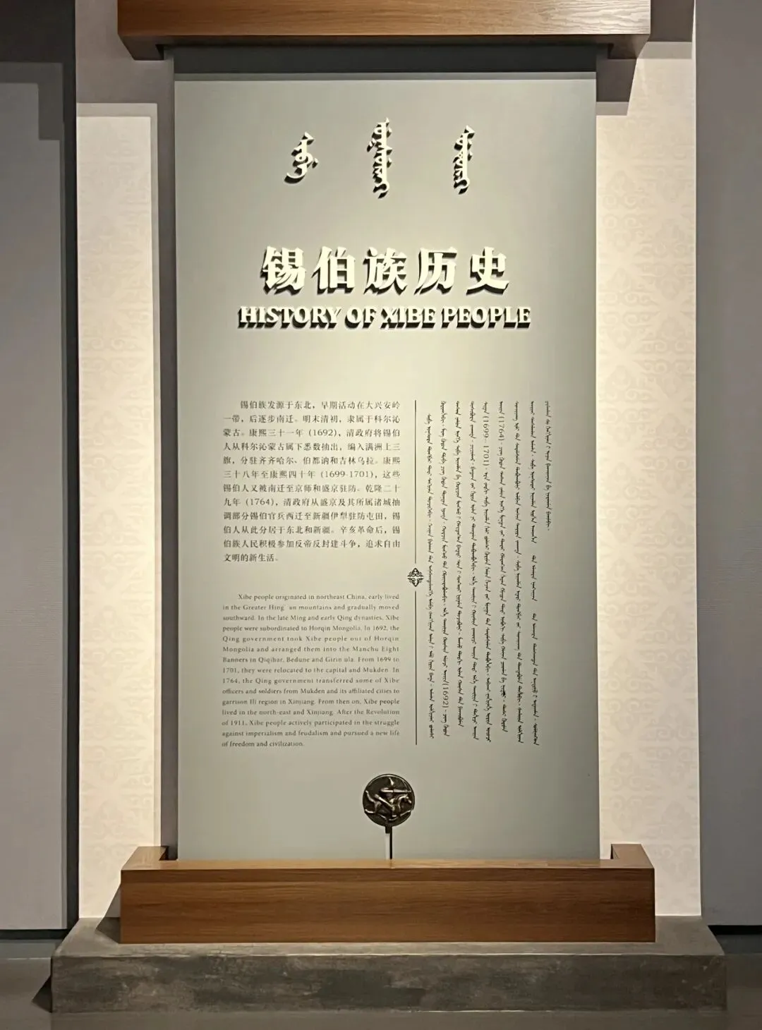 博物馆详细记录了锡伯族从起源到现在的变迁史,由锡伯族历史、锡伯族万里戍边、锡伯族文化和走进新时代四个展厅组成,展示了锡伯族的发展历史和奉旨西迁、屯垦戍边的伟大壮举。