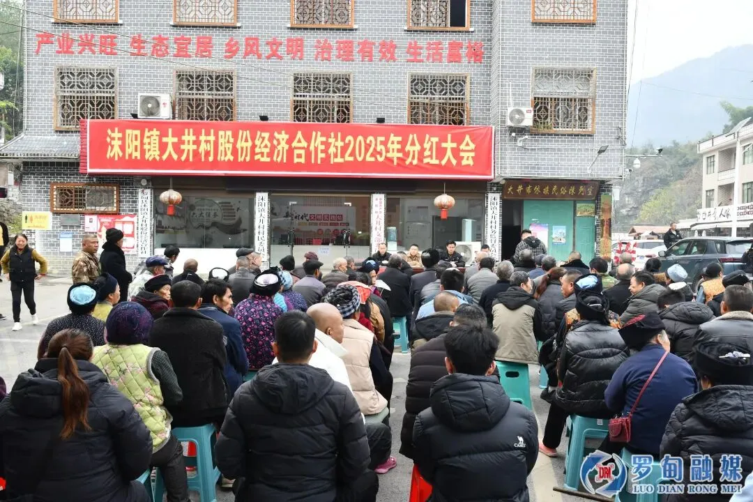 “今天大家都很高兴,分红我拿到了3726元,我准备拿这笔钱来置办年货,买些肉、糖果和对联,一家人热热闹闹过大年。”沫阳镇大井村村民刘再国手拿现金,笑容满面。村民罗建新也感慨:“2024年我们分了2710元,今年又分了3726元。我们村发展好了,来旅游的人越来越多,村里面也越来越热闹了。”