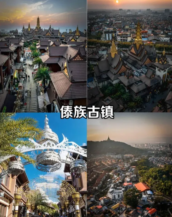 傣族古镇是集傣泰文化体验、休闲娱乐、美食购物于一体的特色小镇,这里的建筑全是原汁原味的傣式风格,吊脚楼、金顶、雕花随处可见,白天安静惬意,夜晚灯火璀璨,充满烟火气息。
