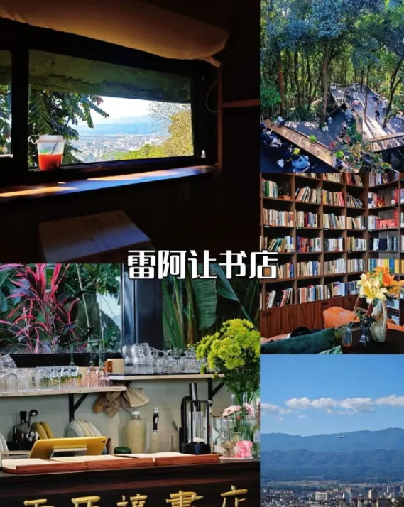 核心玩法:点一杯咖啡,坐在露台或落地大玻璃前,欣赏芒市的城市景观和远处的大金塔,尤其是在日落时分,能看到落日与金塔同框的绝美画面。书店还会有临时展览,可借此了解当地的风土人情。
