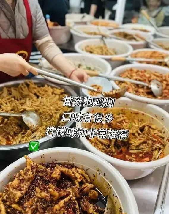 ② 舂鸡脚:把鸡脚、香菜、洋葱、小米辣等食材放在石臼里舂碎,加入柠檬汁、鱼露等调料,酸辣开胃,越吃越上瘾。推荐甘英泡鸡脚、百思特美食城的舂鸡脚,一份15-25元。