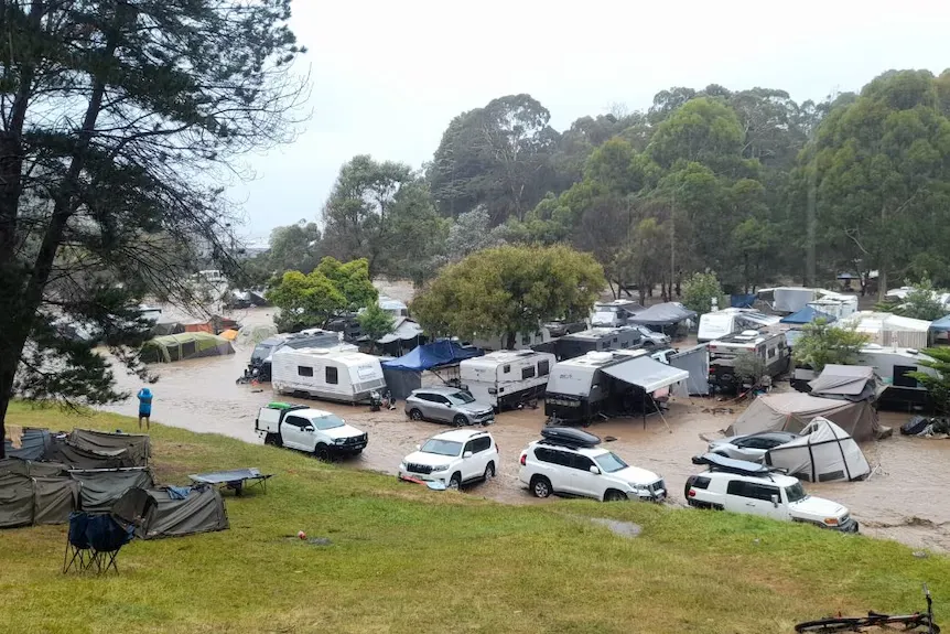 暴雨核心区集中在Wye River、Kennett River、Cumberland Creek和Lorne一带。汹涌的洪水快速积聚,冲过道路,淹没了低洼的房车公园与营地。