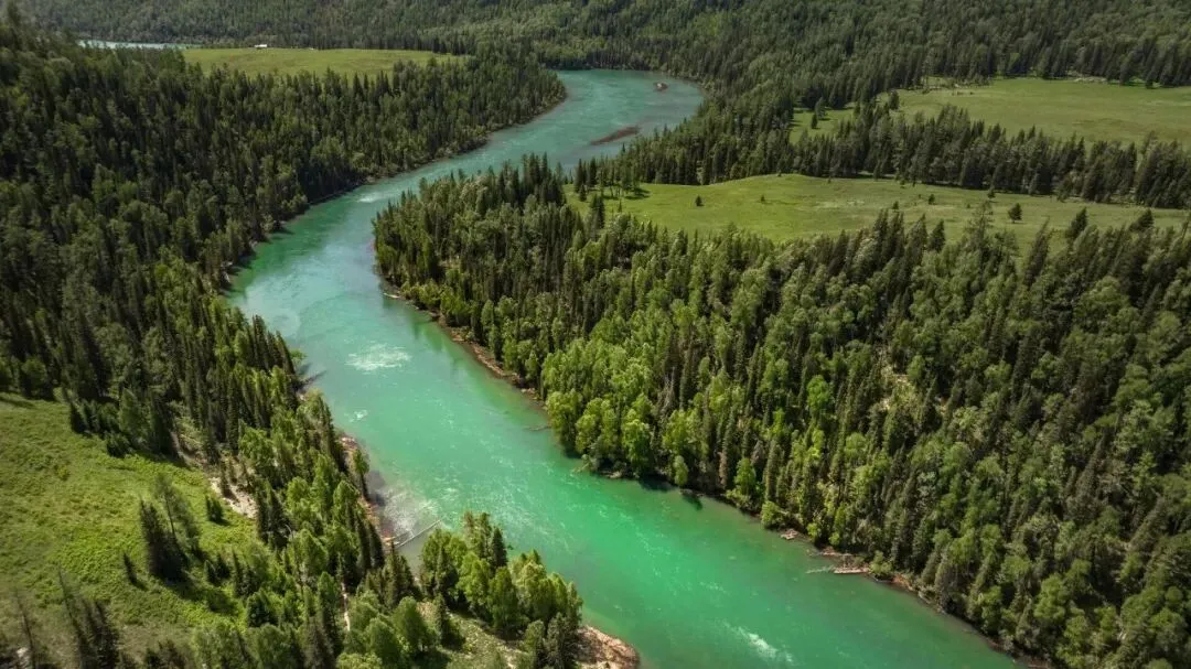 坐落在阿尔泰山脉中的高山湖泊,湖水清澈透明,颜色随季节和天气变化,四周群山环抱,峰峦叠嶂,森林茂密。
