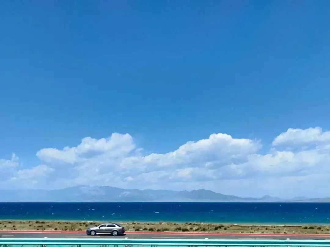 赛里木湖的“渐变蓝”美到动人心魄,像是上帝打翻的调色盘,绘成一幅瑰丽多彩的夏日画卷。