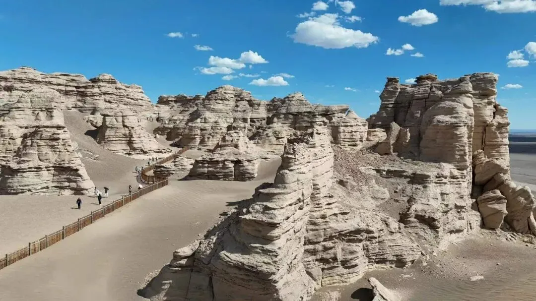 早餐后游览【魔鬼城】(游览约2小时)在魔鬼城可以看到那些酷似城堡、殿堂、佛塔、碑、人物、禽兽形态各异的景观、令人眼花缭乱的陡壁悬崖、以及混迹岩砾中五光十色的玛瑙、随处可见的硅化木、枝叶清新的植物化石,偶尔可获得象恐龙蛋化石的小圆石头,海生的鱼类化石、鸟类化石,当夜幕降临时有时会听到鬼哭狼嚎令人发指的嘶叫,因此才被人们称之为“魔鬼城”。游览结束后,游览结束后,乘专列前往兰州。
