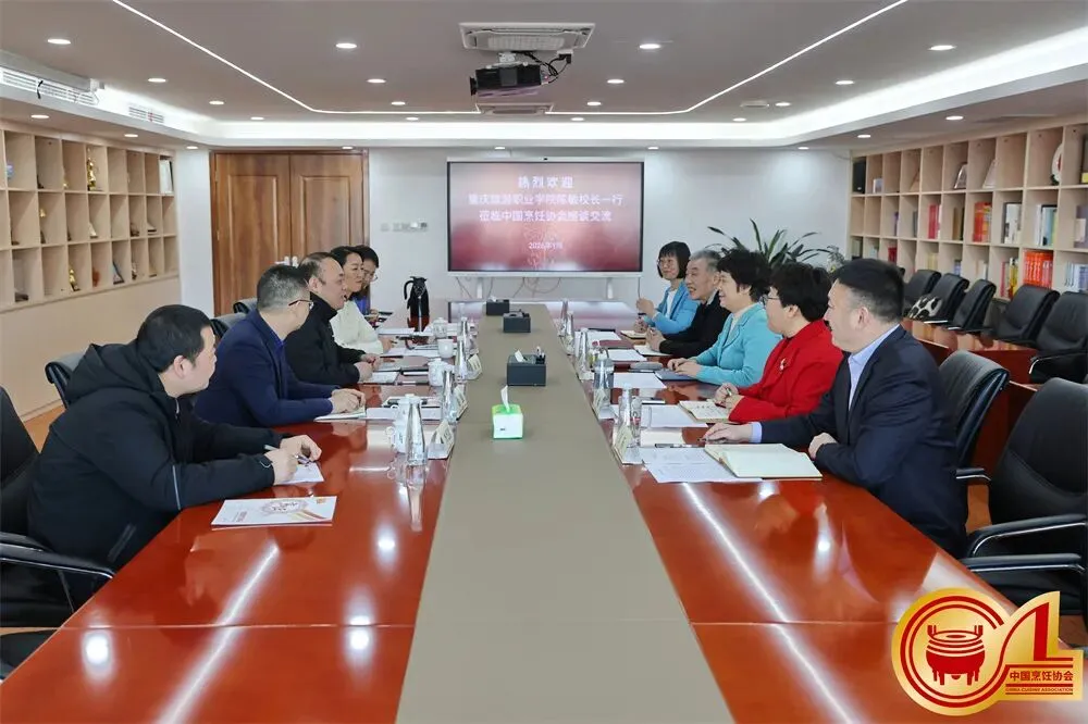 1月16日,重庆旅游职业学院党委副书记、院长陈敏率队到访中国烹饪协会,双方围绕产业发展、标准建设、教师培养、教材开发、校协合作模式创新及专业内涵建设等核心议题开展座谈交流。中国烹饪协会会长杨柳,副会长兼秘书长佟琳,副会长乔杰出席座谈会。