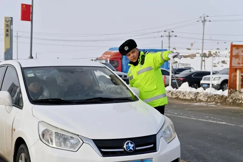 1月13日,民警为游客指引停车场位置。石榴云/新疆法治报记者 单坤摄