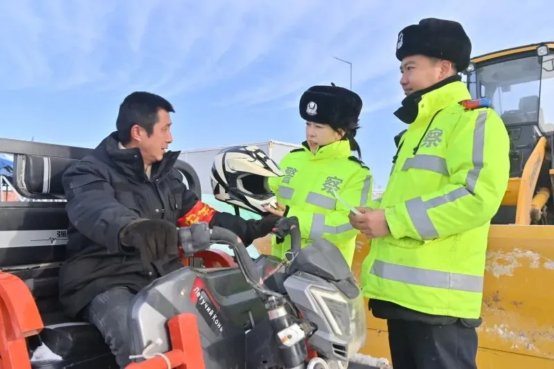 1月13日,乌鲁木齐市公安局交管支队水磨沟区大队民警走进石人子沟鸟巢阵观景区,开展交通安全宣传活动,筑牢景区及周边道路交通安全防线,守护游客与群众出行平安。