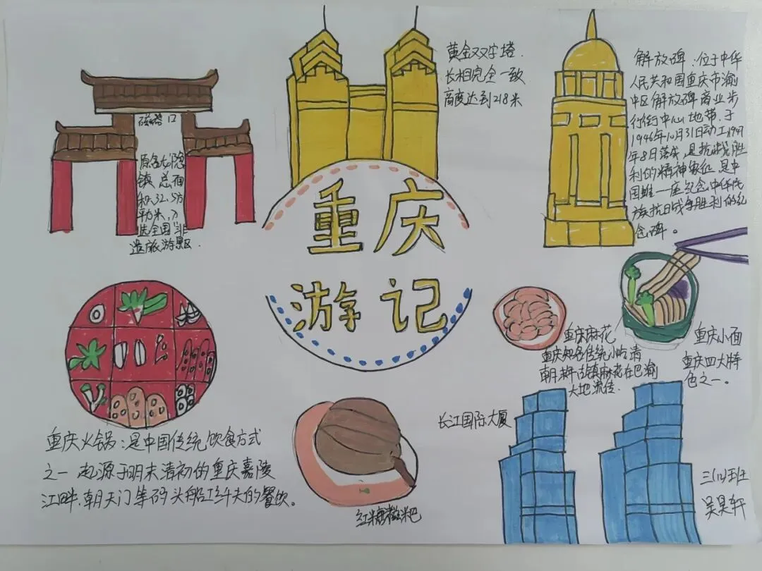 孩子们在搜集资料、撰写介绍、绘制手抄报的过程中,不仅锻炼了观察与表达能力,还学会了用文字描绘风景、用画面传递情感,真正让语文学习走出课本,与生活相融。一张张色彩斑斓、内容丰富的手抄报,既是孩子们眼中的城市之美,更是他们语文素养的生动展现。