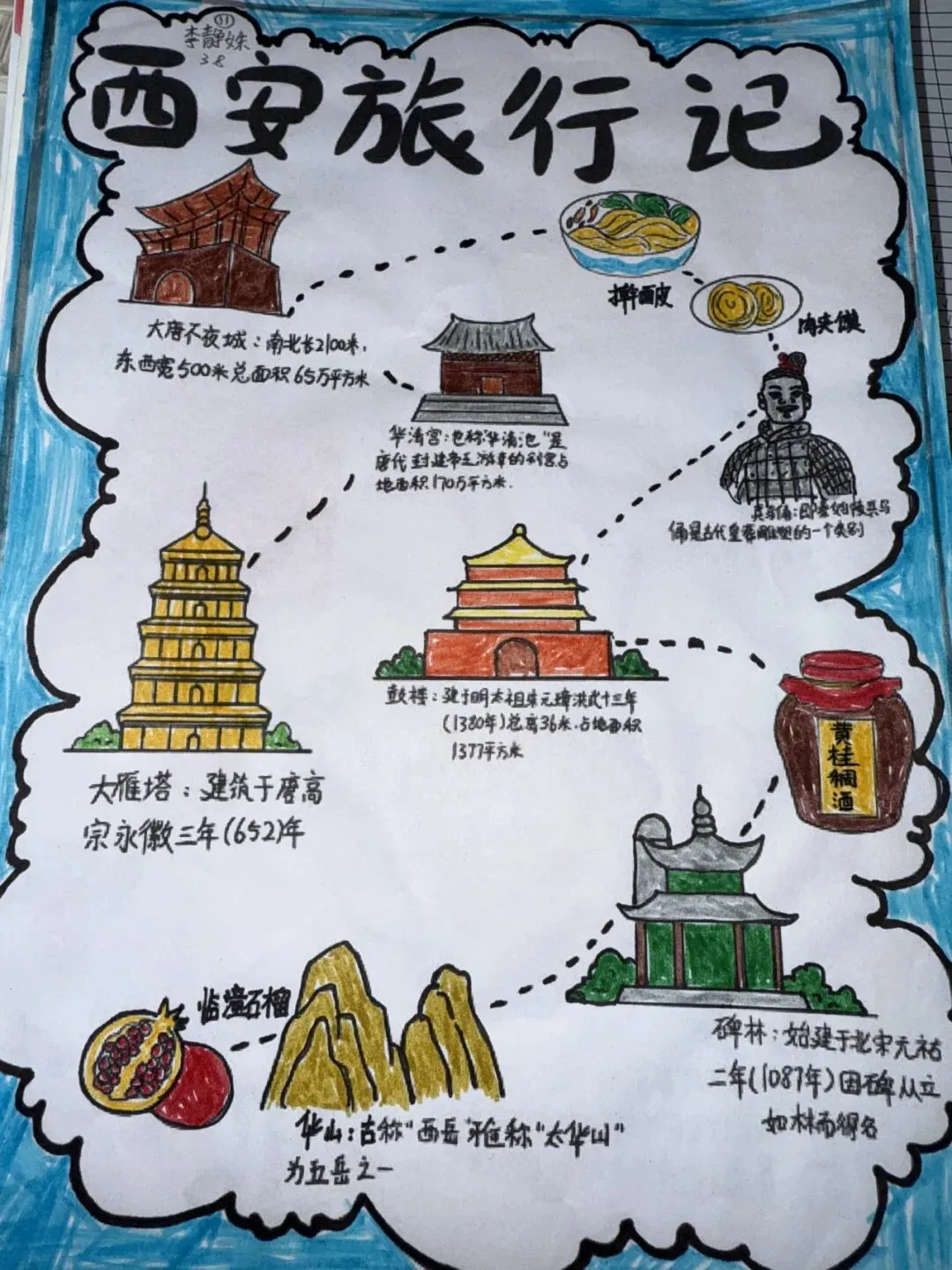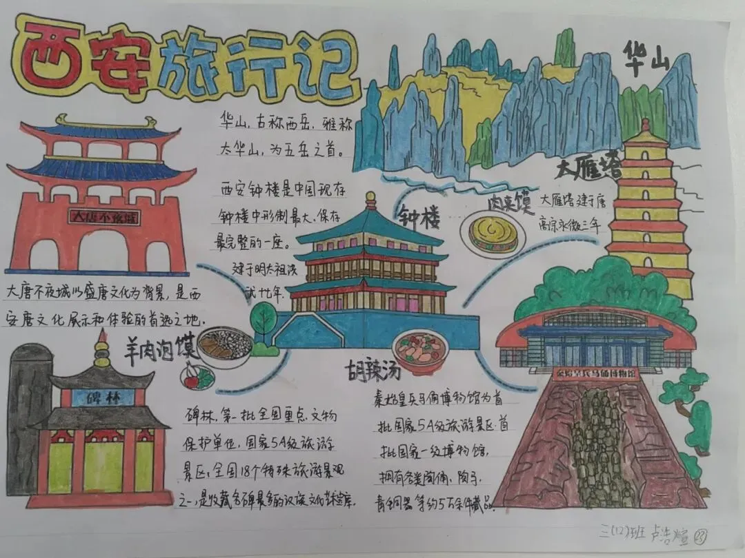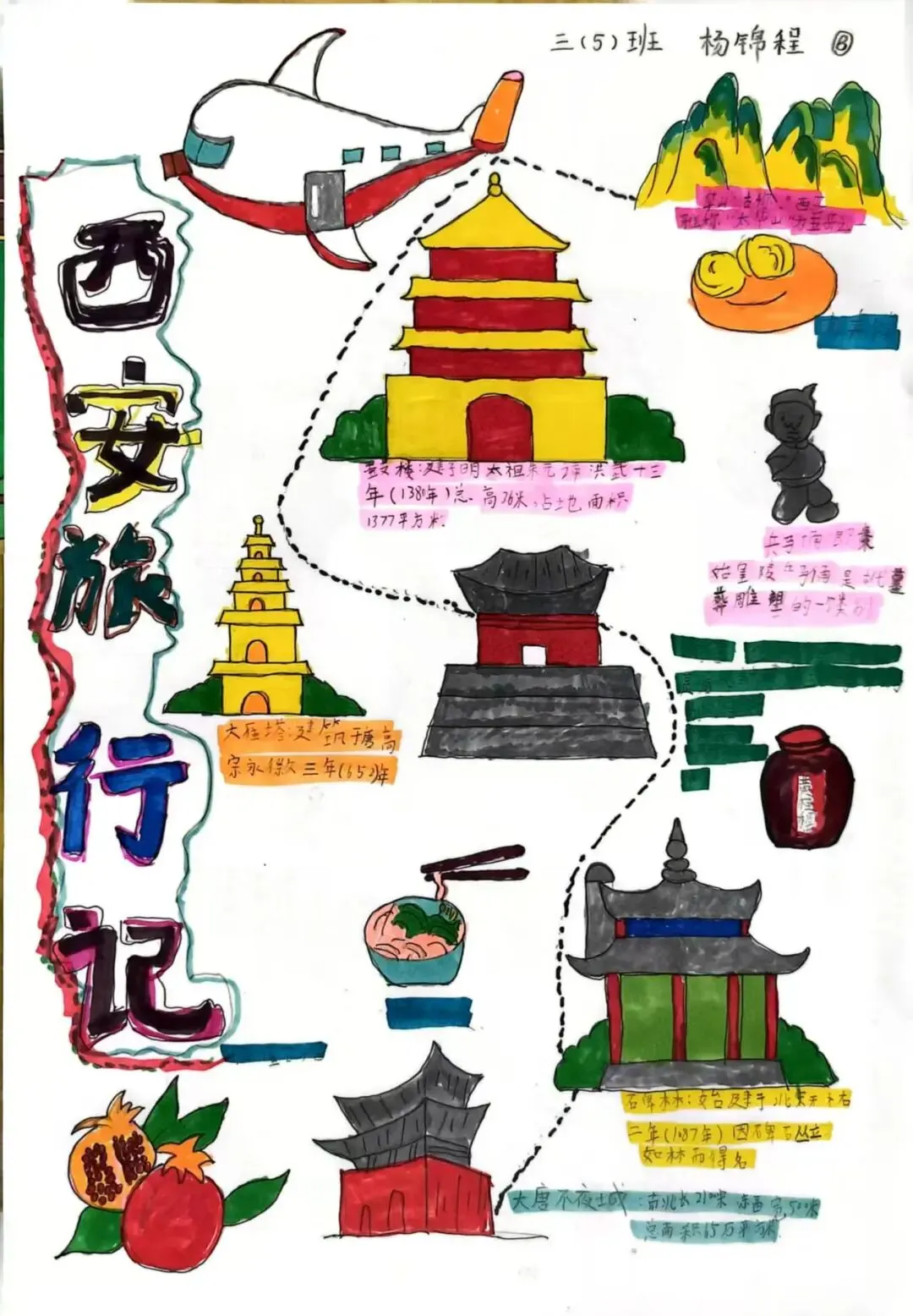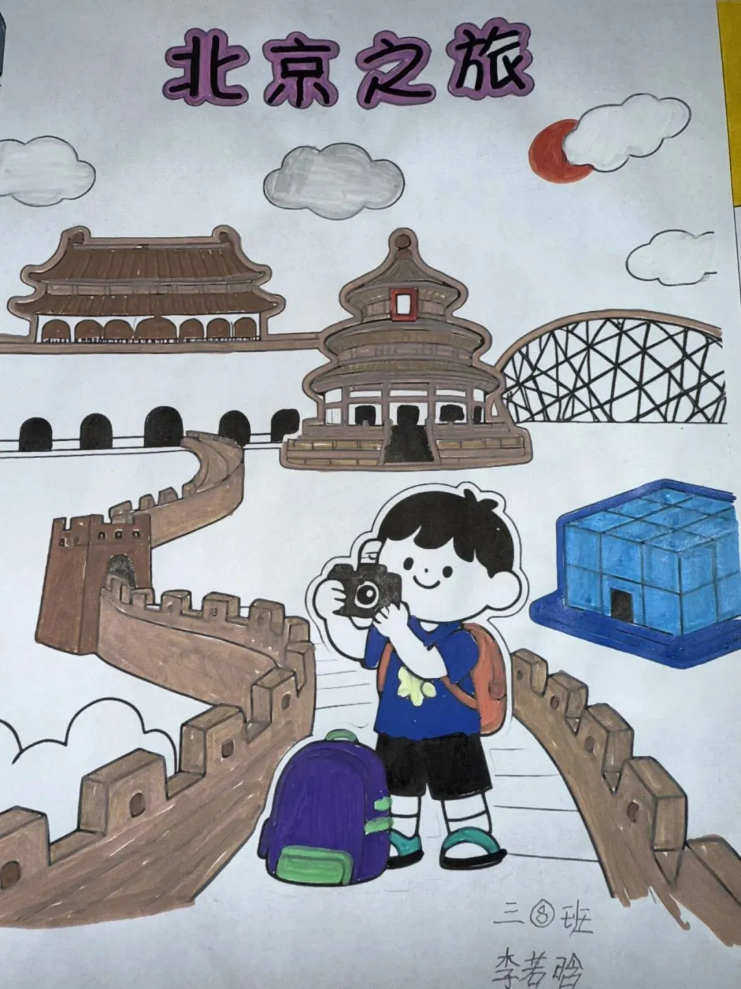 为让学生在生活中感受语文的魅力,领略祖国各地与家乡周边的人文风情,我校三年级开展了“探寻旅游胜地 品味语文之趣”主题语文实践活动。孩子们化身小小旅行家与文化探索者,用画笔和文字勾勒出一场别样的“旅行”。