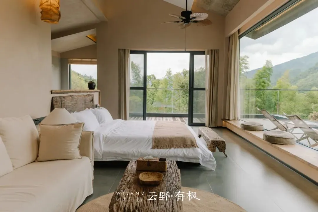 民宿的39间客房分别分布在:“松照”“野忘”“云游”“听风”“林隐”“星月”“云野”“有枫”“木兮”。每一栋主体建筑都配套有独立的自然野趣大院子。