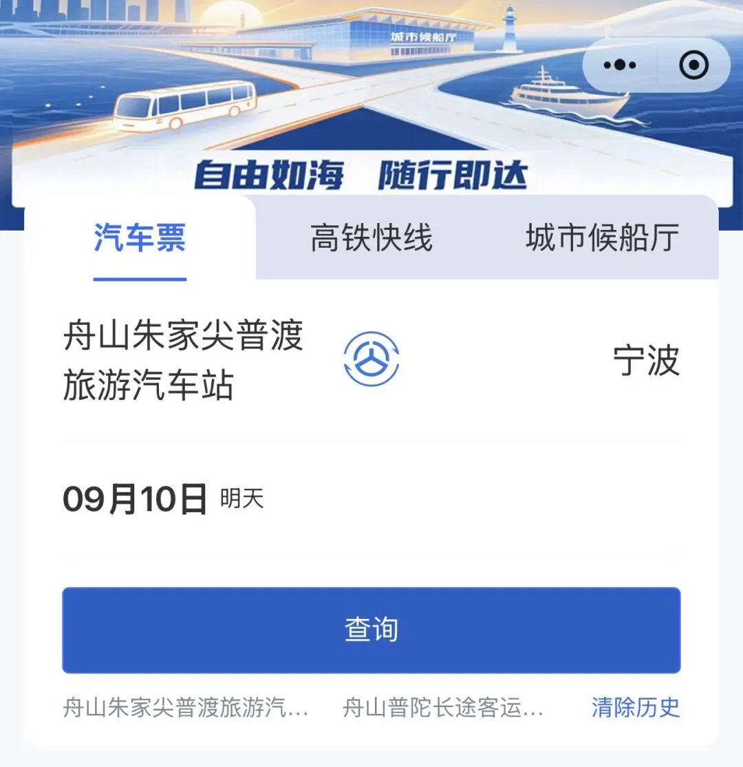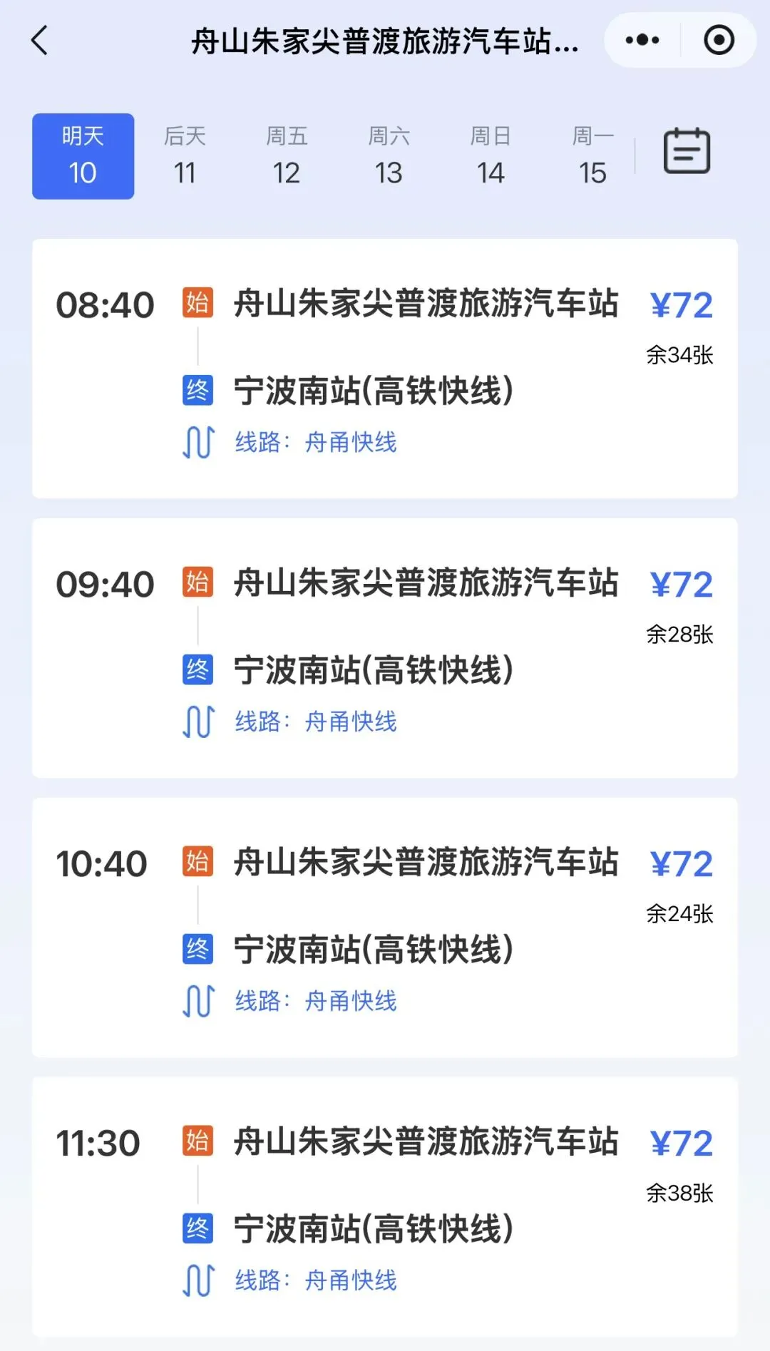 🚌大巴:宁波汽车南站——朱家尖蜈蚣峙码头(宁波汽车南站就在宁波站对面)