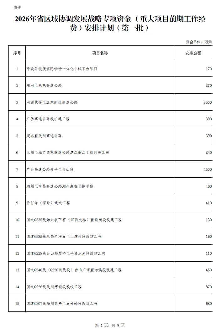 广东8条高速公路通道、粤西多段广东滨海旅游公路,广东141个重大项目前期工作经费安排计划公示,粤西地区有这些→