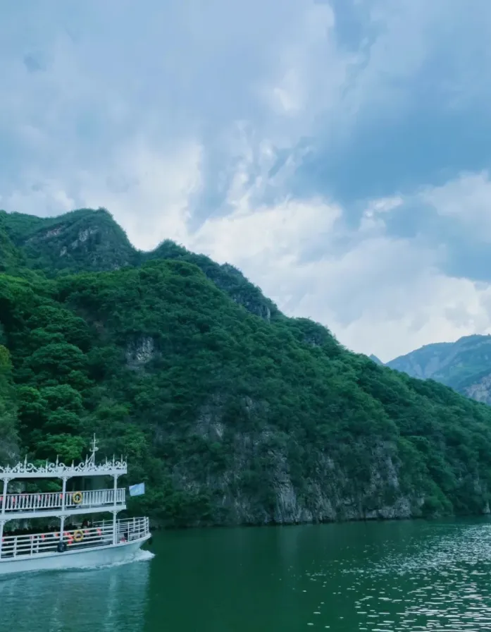 坐船看峡,一线天就在头顶。