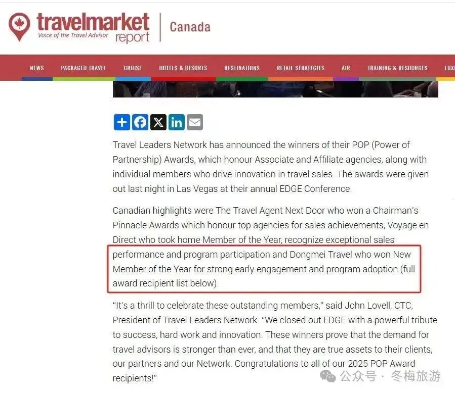我们在2024年加入行业权威网络 TLN Travel Leaders Network,并荣幸获颁 “Member of the Year”年度大奖,同时晋升至 “President's Circle”总裁圈层。