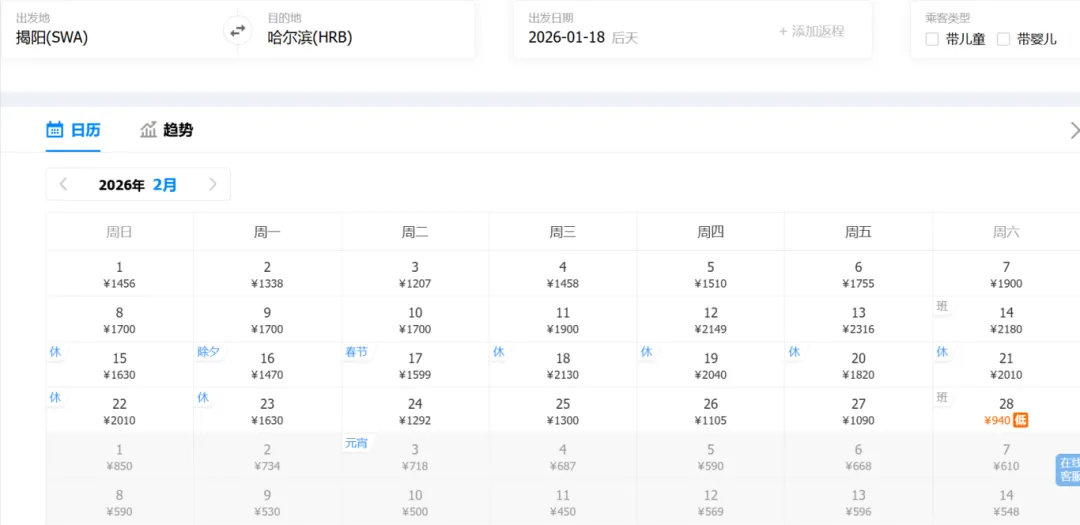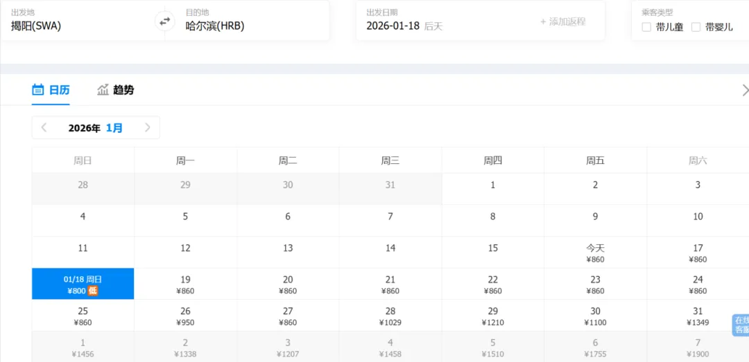 注:以上截图时间为1月16日16:30,机票价格实时变动,以实际购买价格为准,以上机票价格不含机建燃油费。