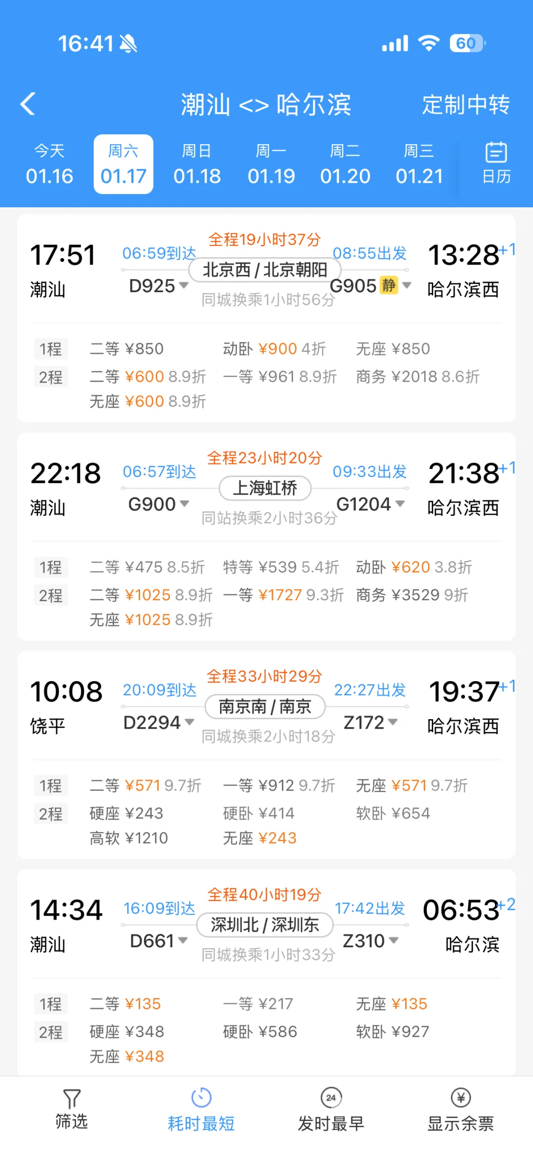 汕头各车站、潮汕站均无直达哈尔滨车次,中转车次供大家参考~