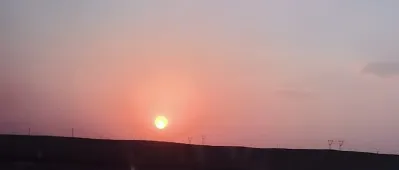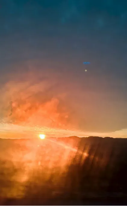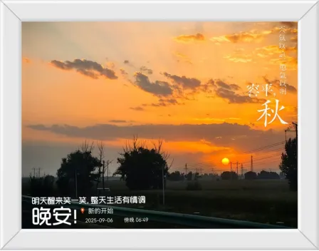 正因为每天要早起晚睡,所以每天都会不可避免地看到日出日落。在有些人心中,会对此熟视无睹:日出日落看得多了,每天都一样,有啥新奇的?但在笔者看来,这日出日落就是一道绝美的风景线。因为虽然日出日落都是一样的,但因为随着地下地形地物的不同,天上云雾空气的变异,呈现着各种不同的色彩,显示出不同的美景。而这种变化是自然的,随意的,因此也是最丰富多彩的。一路旅途中,笔者就不断享受这种大自然的美的贶赠,每天都有新的体验和感慨。下边,就是笔者一路拍摄的早与晚的日出日落和月亮变化的图片,真的很美吧。