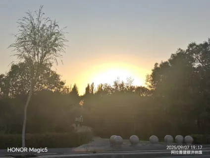 旅游,是件让人愉悦的事情。人们在工作劳动之暇,外出游山玩水饱览山川人文之美,放松身心,亲近自然,有利于精神和身体健康,既是一种新的生活方式,也是一种寓学习于享受的有益活动,可以长见识,润心田,增快乐,使生活变得更加丰富光彩。但旅游又是一件艰苦劳累之事,有时候需要跋山涉水登高履险以满足观感之美,更多的时候是早起晚睡每日紧张于旅途。笔者这次去新疆,几乎每天都是早上6点多就起床,不到早7点就出发,而住宿休息,大多都在晚8点以后,甚至到晚10点。这对于有些爱睡懒觉的人来说很不适应,很不习惯,但这又是旅行所必需的。要知道,在9月的新疆,早上8点左右才出太阳呢。于是,每天要伴随着日出日落转移地方,这也是旅游的普遍特点。