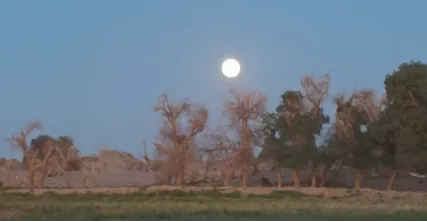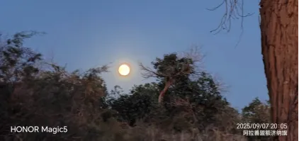 7日,额济纳旗的最圆月亮。这天的后半夜,会变成血红色的月亮,只是我们没看没拍到。