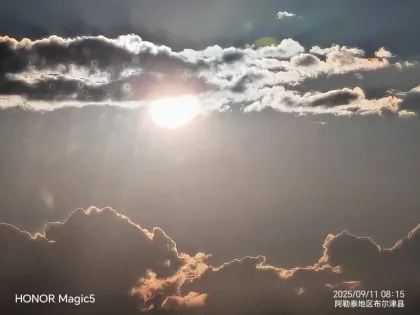 上图,9月13日,从布尔津到克拉玛依途中的朝阳。