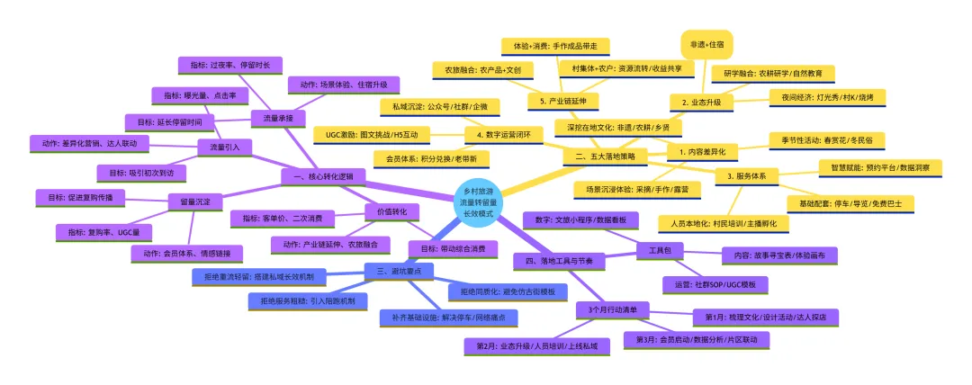 第 3 个月:启动会员体系与 UGC 活动,分析数据优化内容;联动周边村庄打造片区化线路,扩大留量效应。