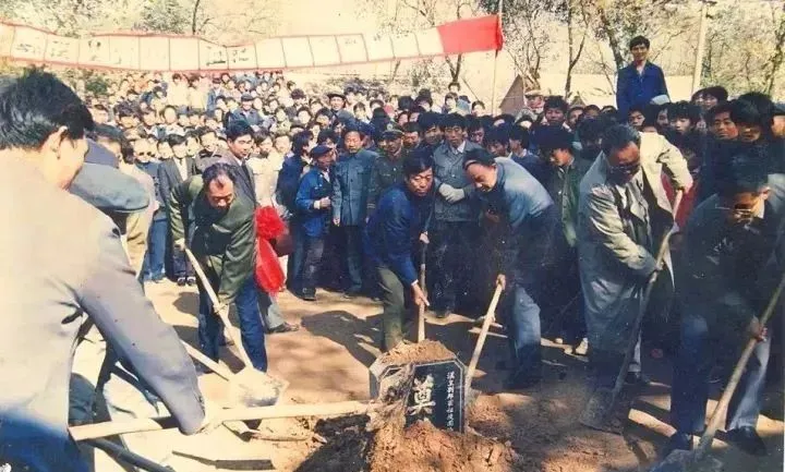 图为1990年11月9日汉皇祖陵修复奠基的场景