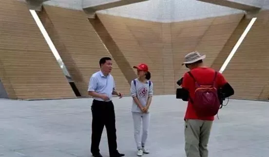 图为中央电视台记者吴丹在汉皇祖陵采访