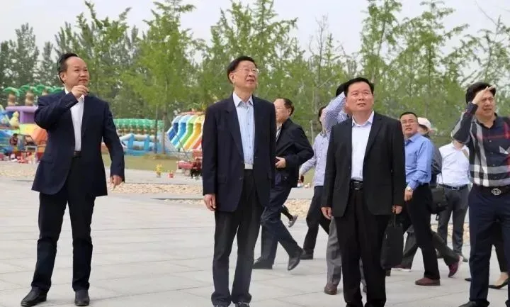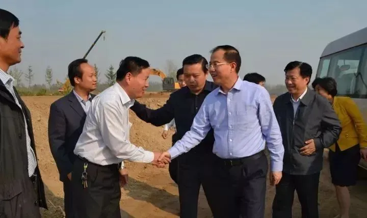 图为十九届中央候补委员、商务部副部长傅自应(担任江苏省副省长期间)来汉皇祖陵建设工地考察