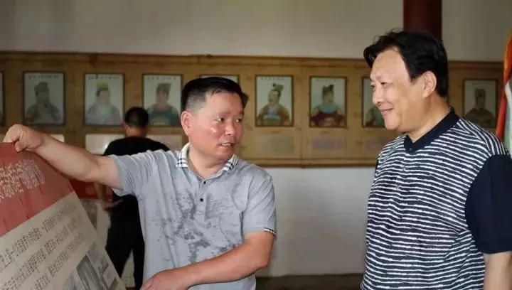 刘氏后裔、少林寺方丈释永信(俗名刘应成)和金刘寨刘氏代表刘恒心先生在一起