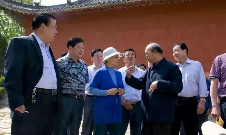 图为原江苏省委副书记顾浩来汉皇祖陵考察
