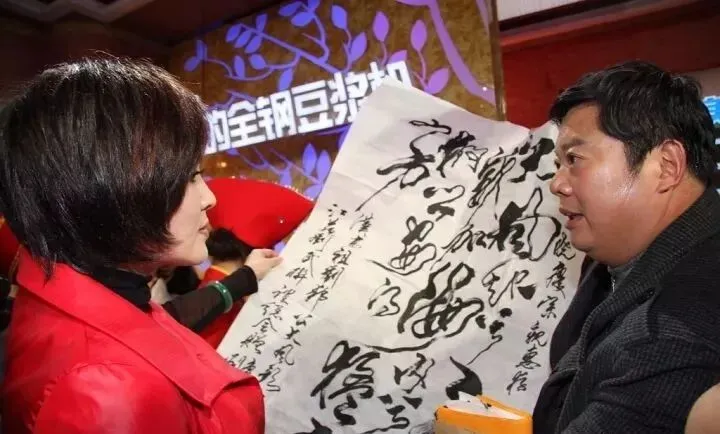 刘氏后裔、著名影视明星刘晓庆接受丰县刘氏书法家赠送的作品