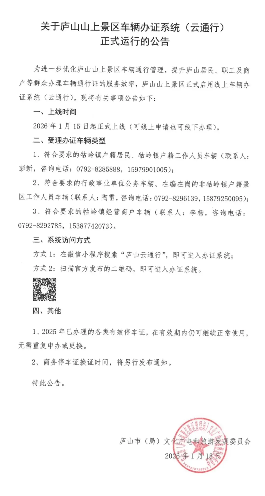 您现在的位置是:首页 > 国内旅游目的推荐 > 正文 国内旅游目的推荐 庐山景区车辆通行证开始线上办理 admin2026年01月17日 04:19:03国内旅游目的推荐13 庐山景区车辆通行证开始线上办理(来源:中国庐山发布) 转载请说明来源于"旅荐网",部分内容转载自网络,如有侵权请联系qlwl@foxmail.com删除 本文地址:https://www.15386.cn/post/82852.html 上一篇 “双遗”30周年:乐山大佛景区免票,本地市民专享 下一篇 我给孩子们画了一本“冬季旅游攻略手册” 相关文章 【文旅动态】出游避坑!吕梁市旅游乱象防范指南 贵州旅行小环线攻略 新疆自由行攻略11天10晚之第二篇 行程路线 避开人挤人,贵州五一包车旅游攻略 亲测零踩雷!聊城春日游玩攻略,土著私藏点位超惊艳 70岁老人夏天游庐山|不累脚避暑游玩攻略,准备出发 太原citywalk旅游攻略!!附详细拍照路线 【游玩攻略】春假来沈阳吧!免费门票、景区优惠政策来了! 旅行穿搭指南|在东京切换:跑步、漫步与城市之间 10-11月新疆旅游保姆级攻略来了!9大必去景点+路线规划+美食推荐+避坑指南+游玩费用,这一篇全搞定,赶紧收藏吧!!! 发表评论 取消回复 评论列表 这篇文章还没有收到评论,赶紧来抢沙发吧~