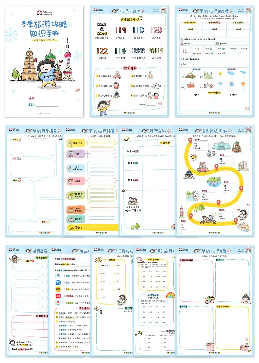 我给孩子们画了一本“冬季旅游攻略手册”寒假要到了 有家长问我 带孩子去旅行 除了拍照 还能留下点什么? 我想了很久 我给孩子们画了一本 冬季旅游攻略手册 没有复杂的文字 全是孩子能看懂的小设计 旅行前