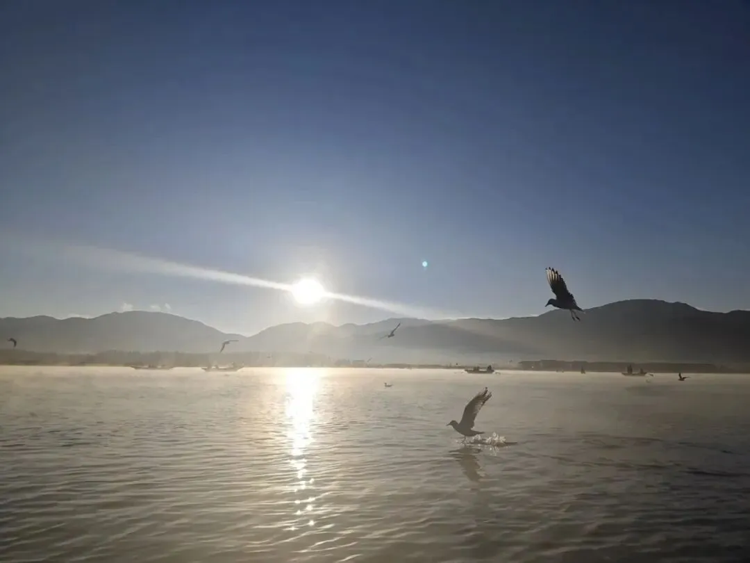 爱情码头看晨雾:我们找民宿老板帮忙抢号,结果没抢到第一轮的船,就没办法在湖上看日出。我们坐船出去的时候天已经差不多全亮了,整个湖面金光闪闪,海鸥都很活跃,飞来飞去的,撑船的阿姨会有小鱼干卖,海鸥很爱吃,但是摩梭粑粑他们也不拒绝。不过它们比较胆小,所以不会像昆明的海鸥一样飞过来咬走,你只能丢到空中或者水里,海鸥才会吃,我扔了半小时,回来之后胸大肌酸痛了三天。很推荐大家去爱情码头看晨雾和海鸥(虽然比其他码头贵一点,船也很难抢),能走草海航道,风景很漂亮,虽然草都已经枯黄了。