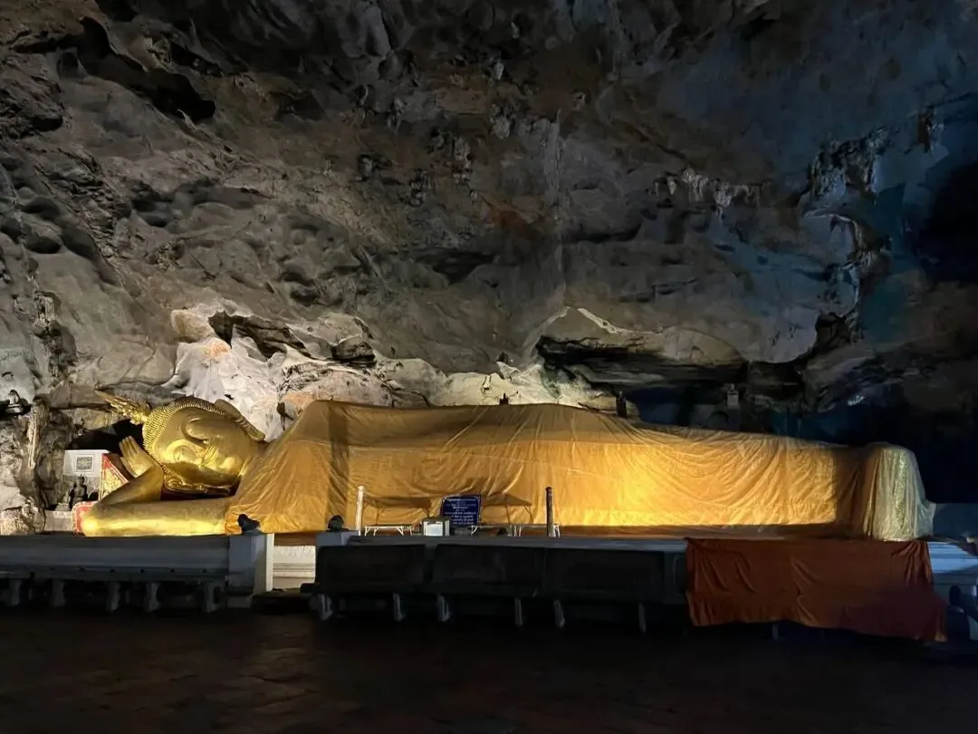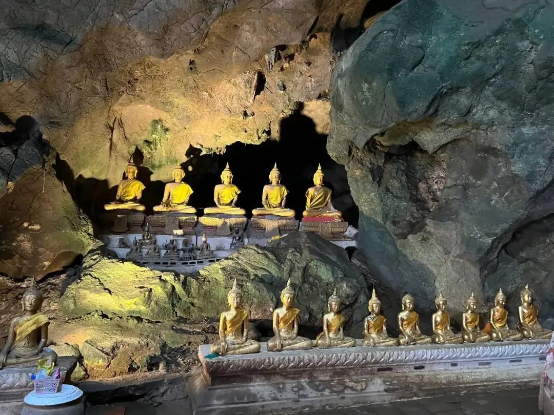 沿途,游轮会经过许多极具泰国特色的寺庙与洞穴。考蓬山洞寺(Wat Tham Khao Poon)是必去之地,九座洞穴构成的地下世界里,印度教与佛教圣地错落分布,灯光映照下更显神秘。