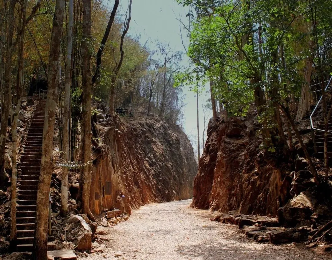 桂河两岸的历史遗迹与博物馆,是带我们深入了解当地的最佳途径。地狱之火通道(Hellfire Pass)深约26米,当年为使铁路通过这不可逾越的岩石板,战俘们用镐、钻头和炸药人工开凿了这条通道。