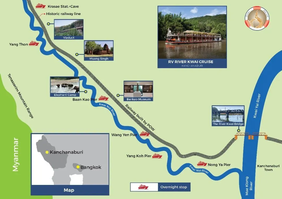 无论选择哪条线路,桂河都让你轻松穿梭于历史与自然之间,不论是在岸上探访景点,还是在游轮上享受悠闲与舒适,都能留下美好回忆。