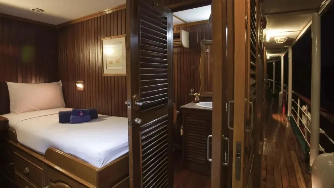 游轮仅设10间柚木豪华客舱,最多接待20位乘客。客舱均配备独立卫浴、空调与迷你保险箱,营造安静而私密的居住体验。船上配有经验丰富的专业导游,并精心安排多种船上体验,让旅程在从容与优雅中展开,顺着桂河的流向,读懂沿岸的历史与自然。